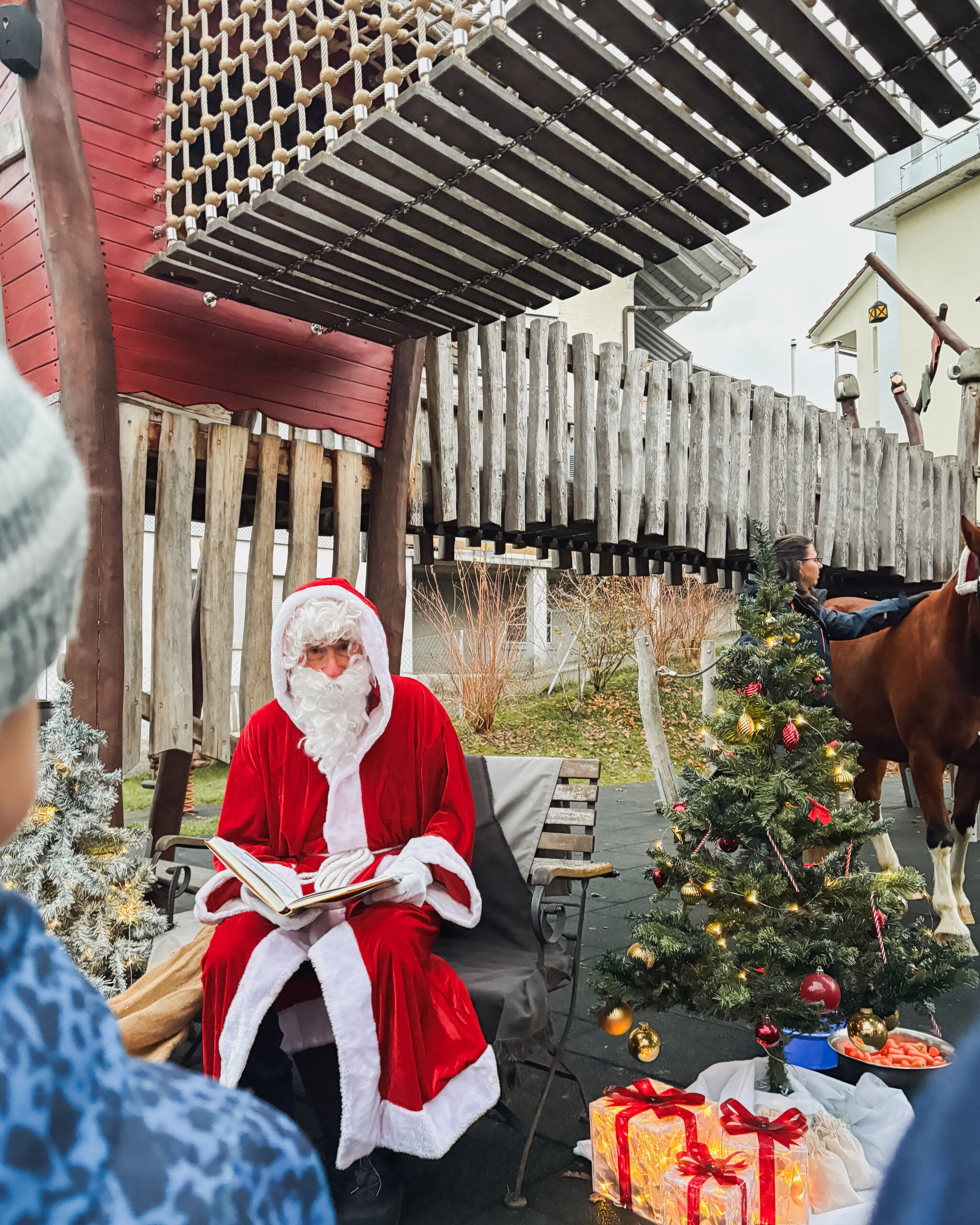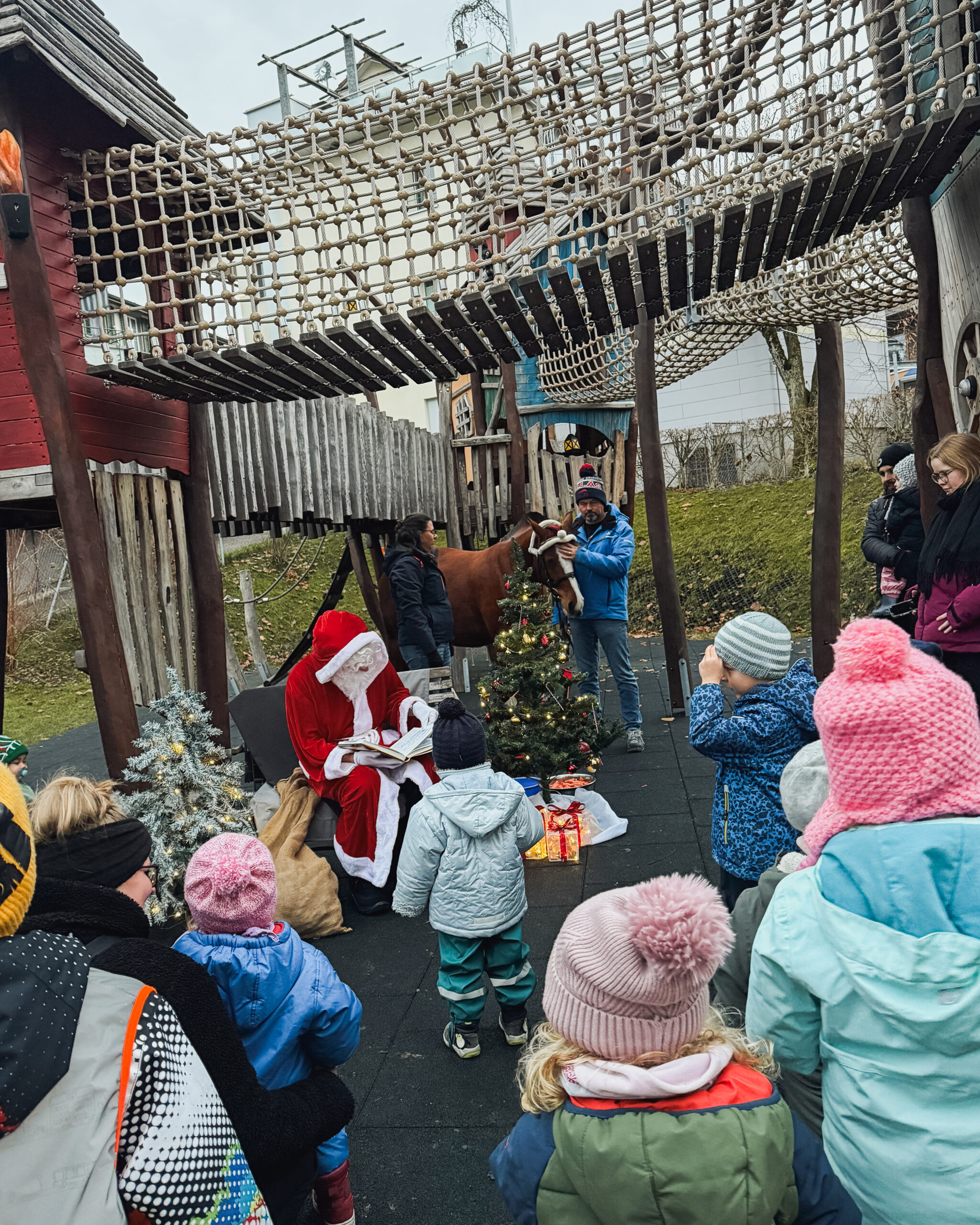 Heute war ein ganz besonderer Tag: Der Samichlaus hat uns besucht – und sogar sein Pferd mitgebracht!