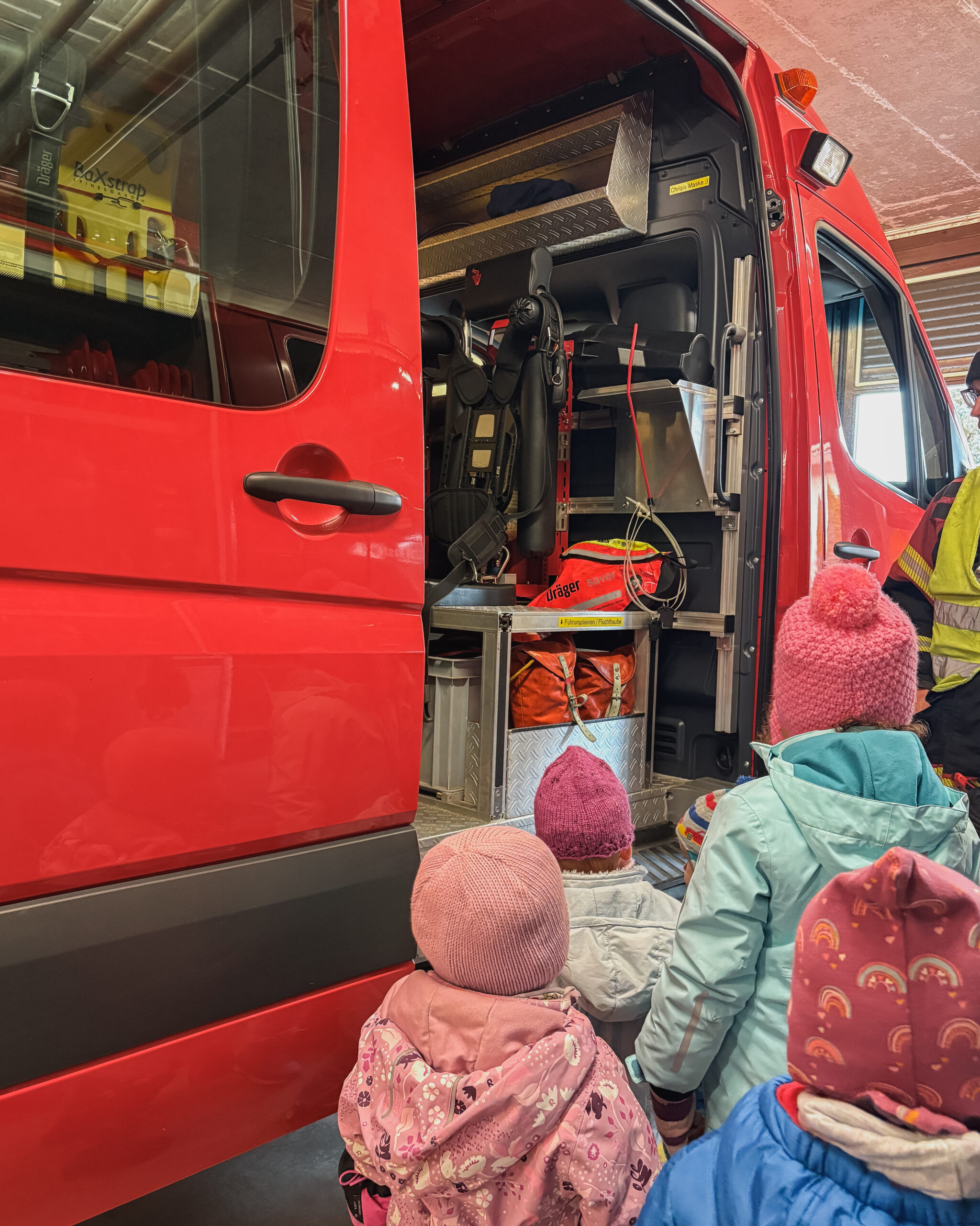 Bei unserem Ausflug zum Löschzug Brandis durften die Kinder einen faszinierenden Blick hinter die Kulissen der Feuerwehr werfen. Sie konnten die Fahrzeuge und verschiedenen Löschhilfsmittel aus nächster Nähe besichtigen und sogar selbst auf dem Platz eines Feuerwehrmanns oder einer Feuerwehrfrau im Einsatzfahrzeug sitzen.
